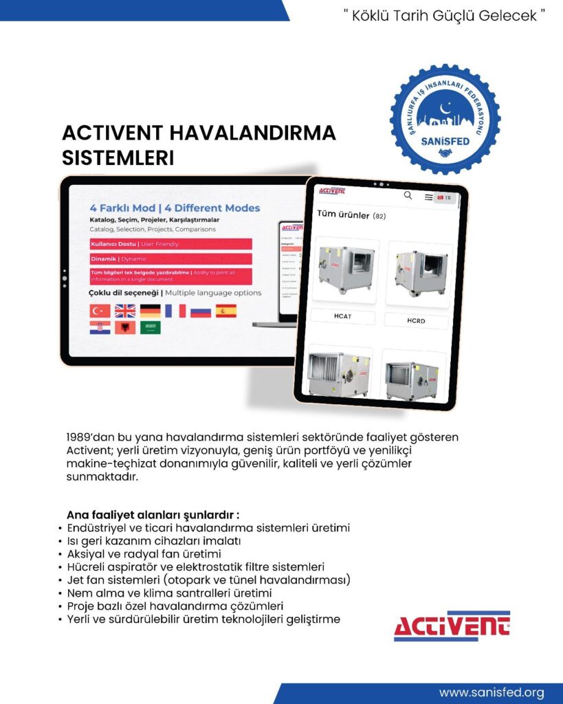 Activent, yerli üretim gücü ve sektöründeki öncülüğüyle Şanişfed ailesinin değerli üyelerindendir. Havalandırma sistemlerindeki tecrübesiyle bölgemize ve ülkemize katma değer sağlamaya devam ediyor.