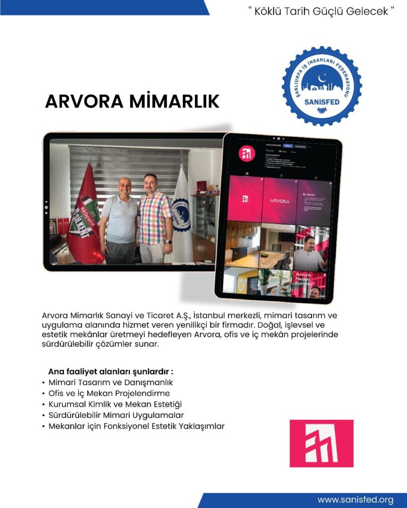 Arvora Mimarlık, mimarlık ve iç mekân tasarımı alanındaki güçlü konumuyla ŞANİŞFED çatısı altında bölgesel üretim gücünü temsil eden önemli markalarımızdandır.