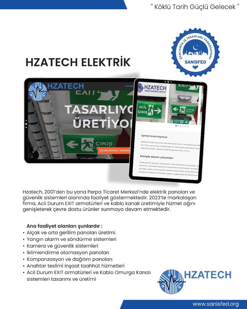 Hzatech, güvenlik sistemleri ve elektrik panoları üretiminde çevre dostu çözümler sunarak ŞANİŞFED’in güçlü üyelerindendir. Yenilikçi ürünleriyle sektördeki yerini güçlendirmeye devam etmektedir.